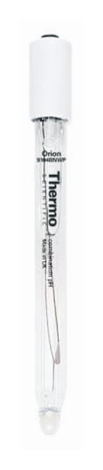 使用 Thermo Scientific™ Orion™ 9104BNWP pH 复合电极进行日常实验室工作。该仪器包括银/氯化银参比品,因其准确度和宽温度范围而被广泛使用。