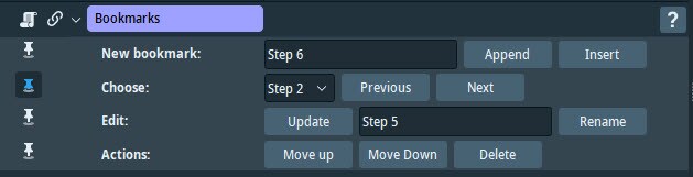Once a project status is saved as a bookmark, it can be retrieved easily by selecting the bookmark in a list. You can then jump to the previous or to the next bookmark with the push of a button.