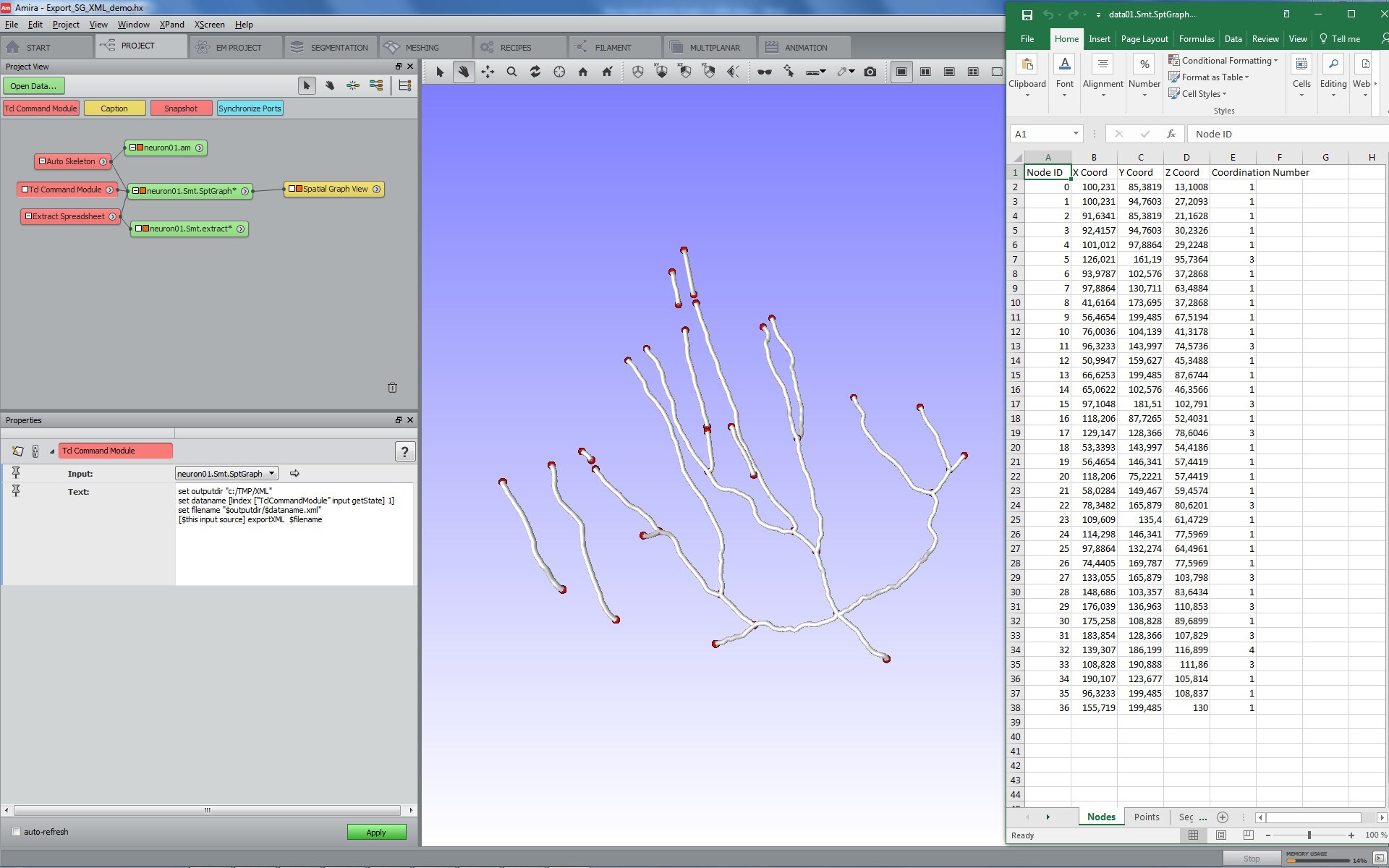 Recipe which can export Spatial Graphs as results from the Auto Skeleton module etc. to a CSV document which is compatible with MS Excel.